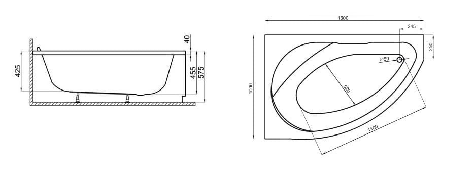 POLIMAT - MAREA 160x100 (prawa) wanna akrylowa asymetryczna