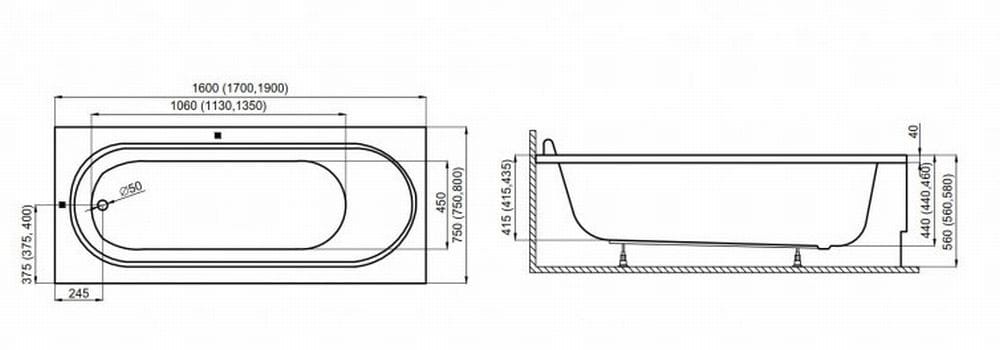 W skład zestawu wchodzi: wanna, stelaż + nogi, uchwyty mocujące do ściany.